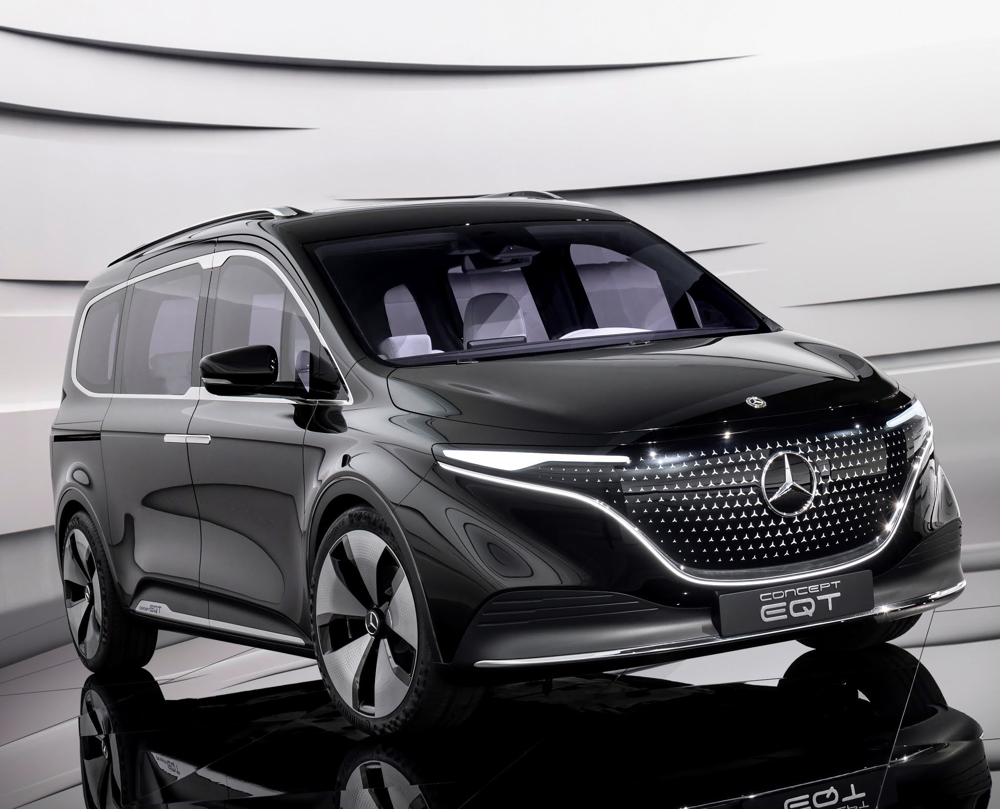 - Other notable features of the EQT concept van include 21-inch light-alloy wheels and sliding doors on both sides of the van allowing access to the third row of seats.